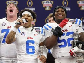 Manning was also aided by better play from his offensive line. He was sacked just once by Oklahoma’s defense, after being thrown to the turf six times against Florida.