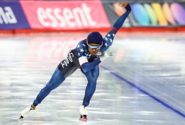 Watch Jake Paul’s fiancée set Olympic record, win speedskating gold